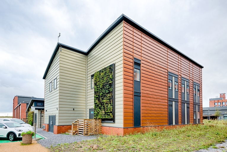 Lessons and experience from these demonstrator projects (such as Active Pod and Active Classroom) were applied to the Active Office project using the funding from UKRI. Active Office was set to be the most ambitious project that the team at SPECIFIC had conceived - a larger two-storey prototype, developed and constructed to a significantly accelerated schedule. This time the team used only commercially available technologies and existing supply chains, to demonstrate that new sustainable building design is possible now, in the current market.