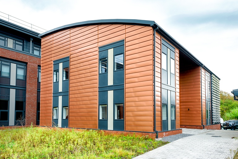 The building was constructed using a modular system, manufactured by Wernick just 15 miles from the University campus. 12 modules were transported to the site over a short two-day period. The curved roof, consisting of a series of trusses manufactured in another local factory, form the main roof structure which sits on top of the modules. The solar energy-generating roof was also manufactured offsite with the photovoltaic modules being bonded onto the steel roof panels before being transported to site from the local supplier in Newport. This enabled the solar energy-generating roof to be installed quickly with minimal site activities. The offsite construction and local manufacturing and supply reduced the time and carbon emissions associated with the build.