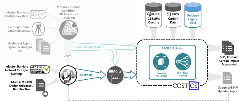 The partnership formed to develop the AI-enabled Automated Cost and Carbon Estimating (AACE), a software solution that could be integrated with BIM. They committed to trialing AACE on HS2.