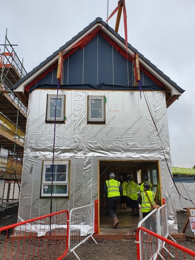 Homes constructed with factory-made frames and roofs tiled on the ground remove the need for scaffolding and in doing so improve the safety of the workforce. Better scheduling and planning also prevent accidents and defects. The project is working with the HSE to capture improved risks onsite, including reduced working at height; less manual handling; and reduced silica dust.