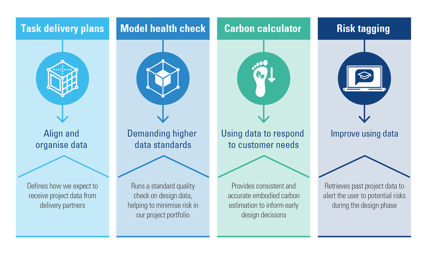 Use of BIM will be intuitive and new workflows will provide seamless population of information systems that manage projects. Consistently-collected data will unlock automated information plans and automated calculation of embodied carbon. Design health checks and tagging of risks will be easier, as known issues from previous project data can be compared with the 3D design model. Lessons learned from previous projects will automatically be highlighted improving project delivery which will be faster with reduced errors.