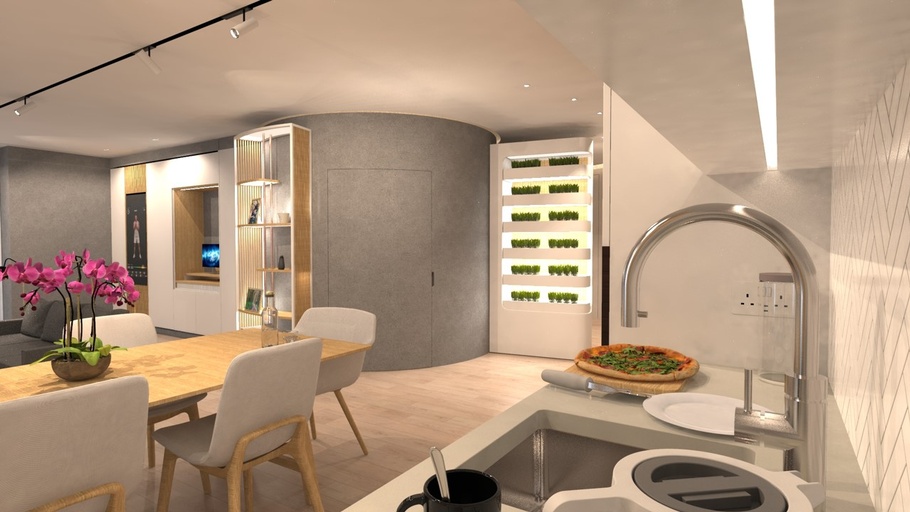 The Innovation Centre, a two-bed apartment, prototypes the first home designed to use data and smart technology to adapt to the residents lifestyle, and to plug-in to smart city networks. Connected to the core of the Innovation Centre, sensors collect data that continuously optimise the performance of the home, while user-specified smart technology products provide an enhanced living experience. Hidden mechanisms under the Innovation Centre's modular components are digitally connected via the MyGlobalHomes app and allow entire sections of rooms, such as partition walls and storage units, to move safely and seamlessly around this innovative configurable home. At the touch of a button, residents can reconfigure their homes using the MyGlobalHomes' app, including controlling the low energy lighting, natural lighting and shade, and ventilation systems. The app also reports overall home energy use so people can make good decisions on energy optimisation and utilities. MyGlobalHome's ULTRA is a hardware and software-based technology platform enabling any property development to be made smart. Residents will have access to: a Marketplace through which they can order home upgrades; a Community Hub which connects the home with events, activities and a local support network; and a Concierge through which they can schedule maintenance tasks and request other home assistance. In addition, MyGlobalHome's ULTRA operates on the company's ethical data-brokering platform, providing residents with a simple way to manage and realise the value of their smart home. And finally MyGlobalHome has worked with Supermassive to develop an augmented reality (AR) environment for visitors to experience the many flexible living options available in the Innovation Centre at the University of Surrey.