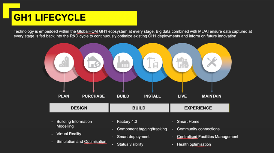 MyGlobalHome has re-designed the concept of home, by reimagining the future where the home adapts to the needs of the homeowner to support life's evolving needs. Using a combination of increased connectivity and smart manufacturing techniques, MyGlobalHome has created an off-site construction approach, that also uses plug and play components, so that homes can easily be adapted in the future. This precision-engineered production approach to home building improves quality, increases speed of delivery, and reduces costs, while the modular design allows for ease of interior and exterior re-modelling.